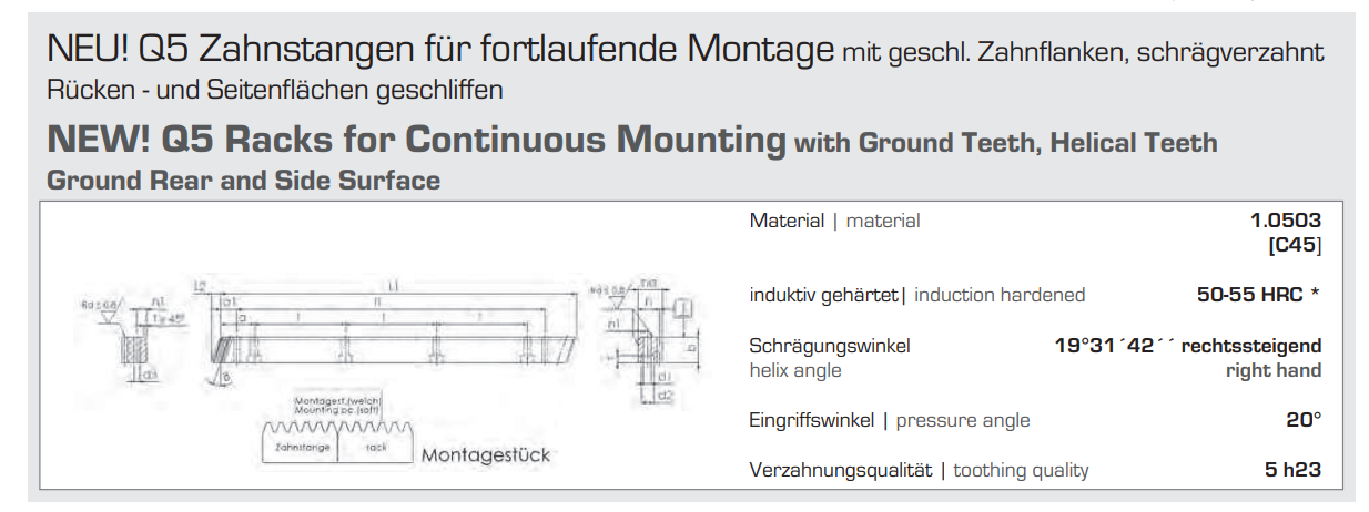 - DIN5등급의 최고정밀등급 랙기어